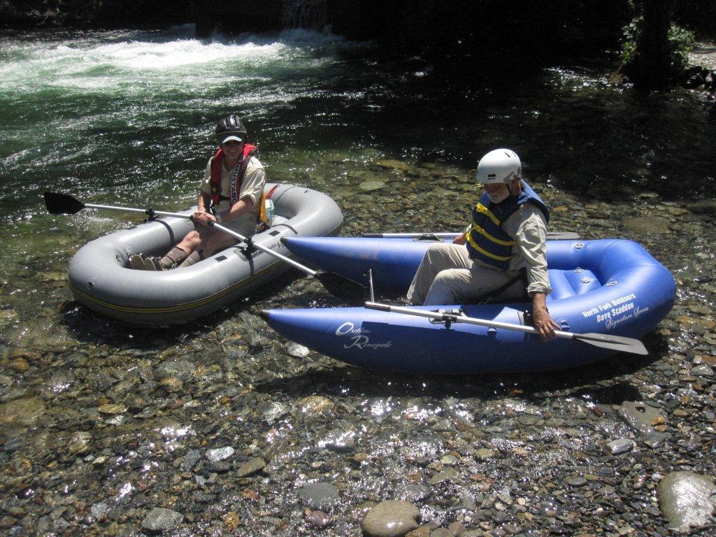 On Tuesday Hans Geyer & I floated down from Oxbow Dam to the campground. We wanted to check out the various fishing areas at the top of the club and also the North Fork of the Middle Fork which is where the club begins. Denny Freidig drove us to the Dam launch point. I had just delivered Denny his new Renegade float tube so he wanted to try it in the lake before making the run. Pictures were taken as we entered the cold water. Actually the water felt good with the hot weather.